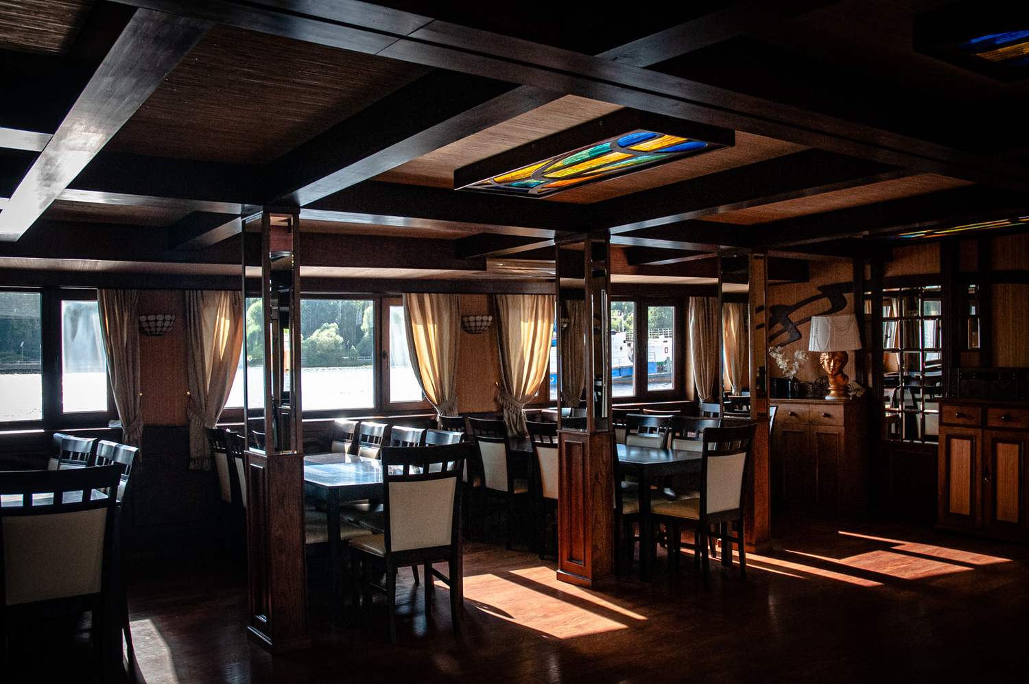 Чтобы никто никуда не спешил и мог восстановить силы, на борту будет работать кафе-бар с разнообразным меню: горячие блюда, вкусные закуски и напитки на любой вкус.
